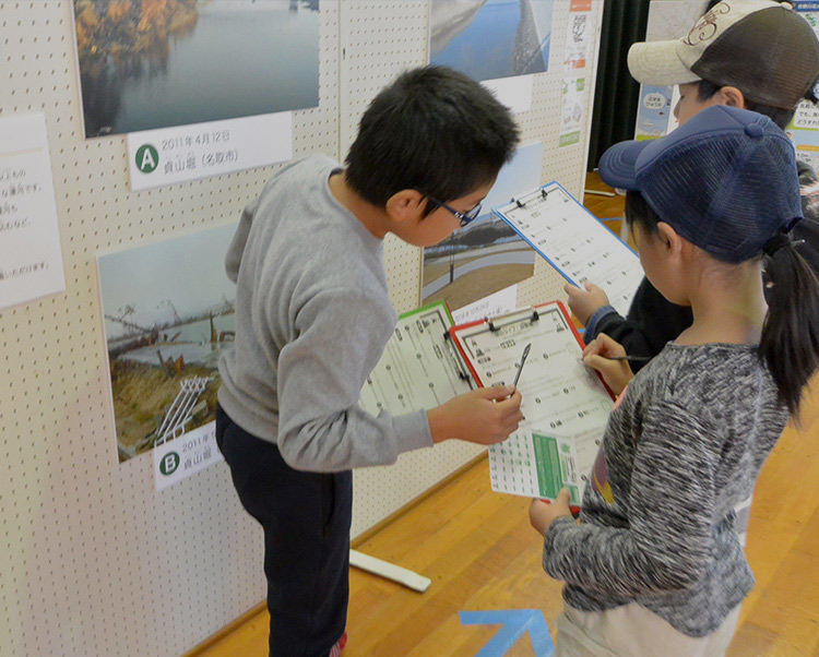 発足当初から東日本大震災を風化させない、また特に子どもたちの防災・減災意識を高めたいという目的において、被災された方をお招きしての講演会や、静岡駅および三島市内の小・中学校での写真展を展開し多くの方と交流を続けてきました。